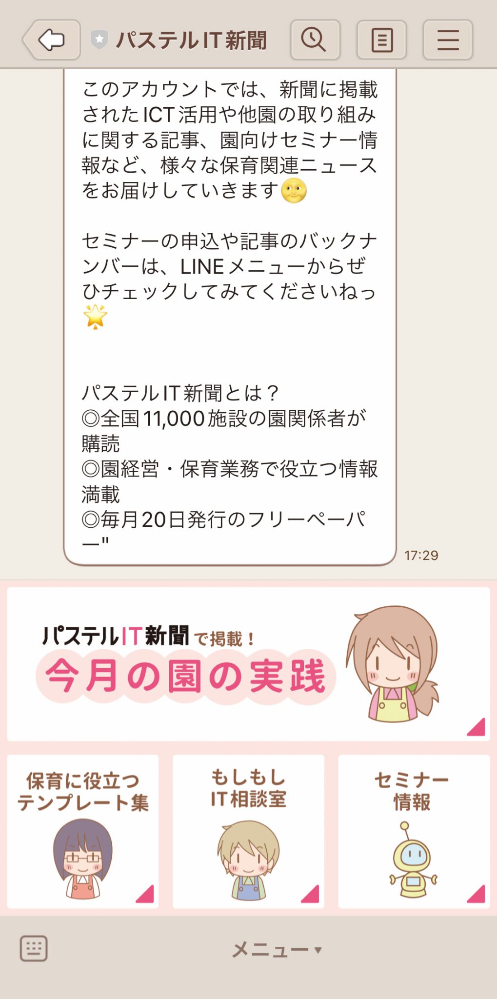 LINEは連絡手段のイメージが強いかもしれませんが、情報収集・共有ツールとしても注目され、保育関連情報が増えてきました。当紙も公式アカウントを開設。お役立ち情報を提供中です。