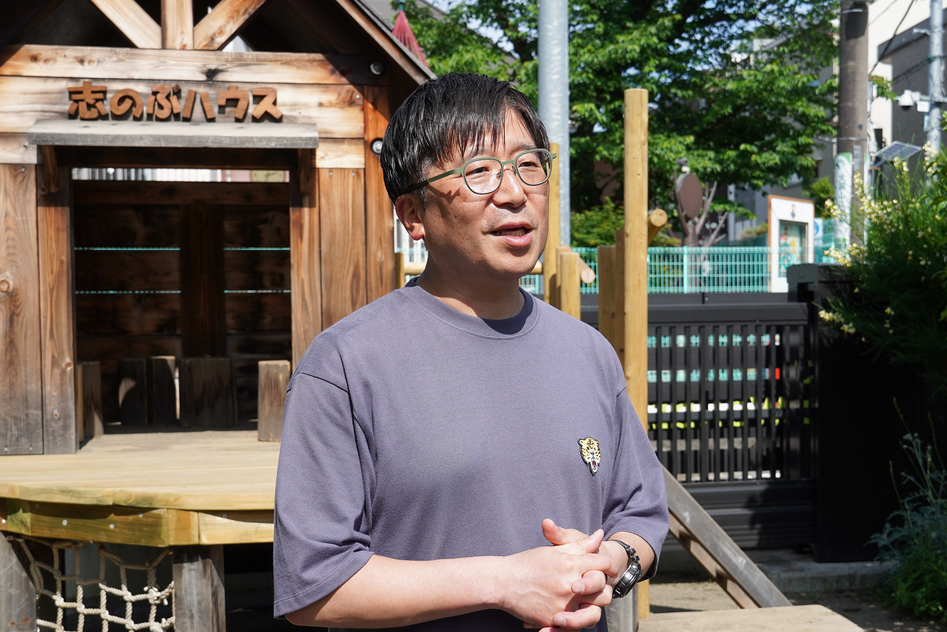 季節ごとに景色が変わる園庭や子どもの豊かな反応を目の当たりにする中、岡園長らは園庭のない子どもたちにも場を共有しようと、園庭開放に注力。年6回の園庭開放「志のぶわいわいパーク」を実施しています。