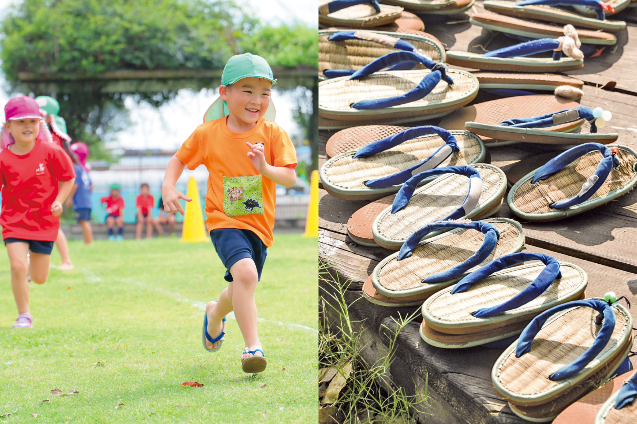 ぞうりを履き、思いっきり遊ぶ大沢幼稚園の子どもたち