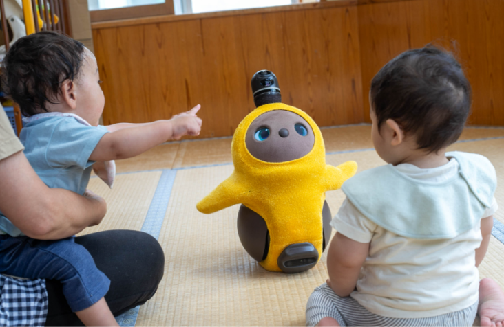 LOVOTは、名前を呼ぶと近づいてきて見つめてくる。好きな人に懐き、抱きしめるとほんのり温かい。生き物のような生命感があるのが特徴のペットのようなロボットです。LOVOTとの触れ合いで、子どもの「やさしさ」「言葉の表現力」「他者の気持ちを読み取る力」「順番を譲り合う社会性」などが自然と育ちます。