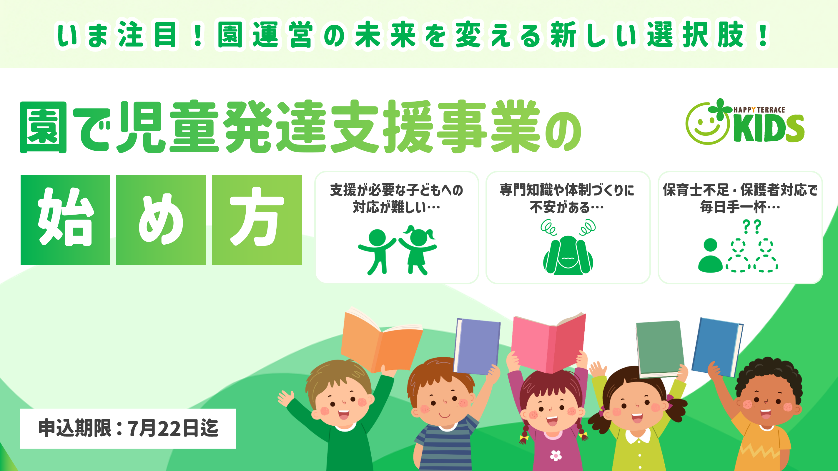 児童発達支援事業「ハッピーテラスキッズ」は、0歳から小学校就学前の、発達の遅れが気になるお子さまを対象に、日常生活における基本動作や知識・技術を習得し、集団生活に適応できるよう支援をおこなう児童福祉法に基づく福祉サービスのひとつです。