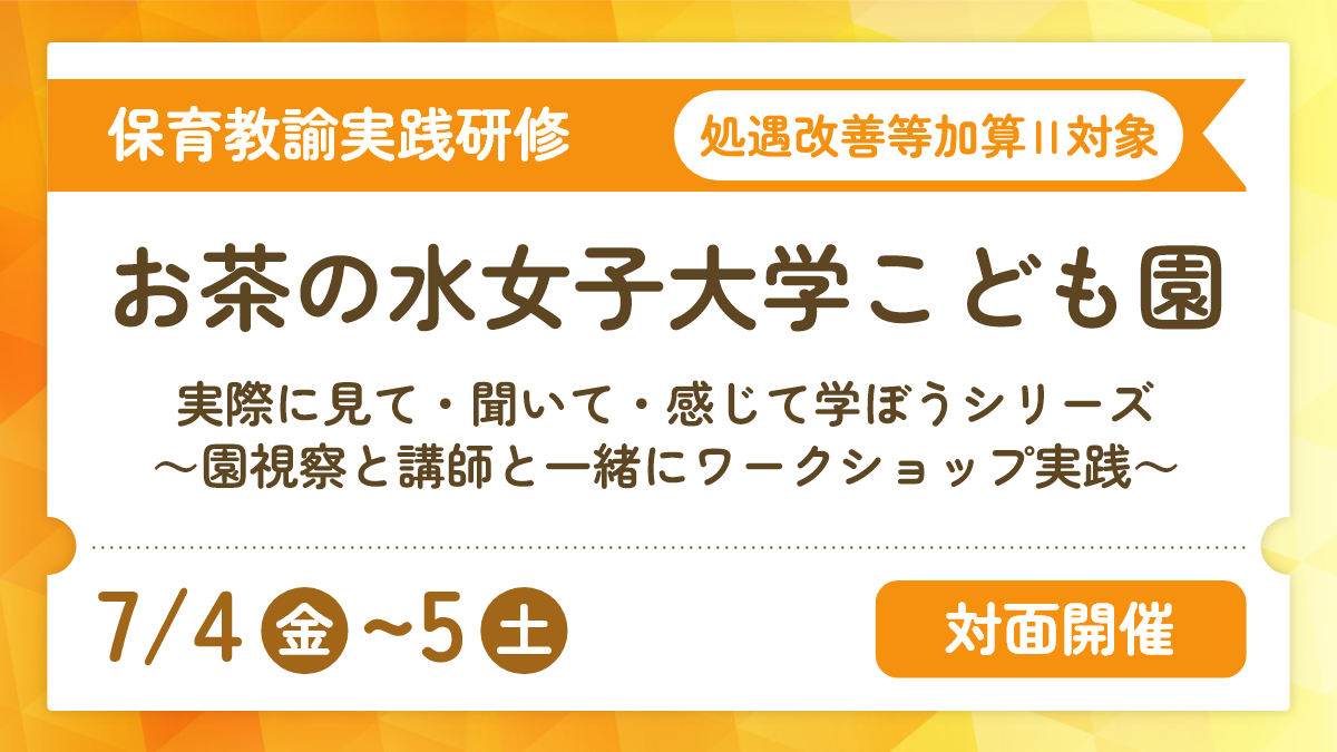 | 名称 | (一社)全国認定こども園連絡協議会 保育教諭実践研修 園視察と講師と一緒にワークショップ実践@お茶の水女子大学こども園 |